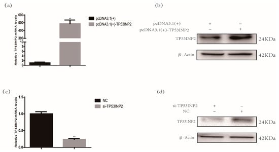 3.1. Constructing and Transfecting pcDNA3.1(+)-TP53INP2 to Overexpress TP53INP2 and Transfecting Si-TP53INP2 to Interfere with TP53INP2
