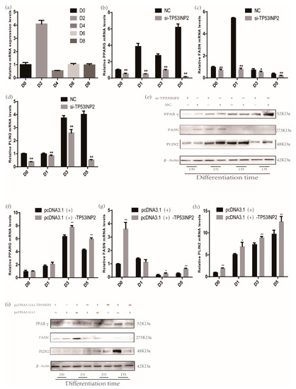 3.2. TP53INP2 Promotes Differentiation in Bovine Adipocytes