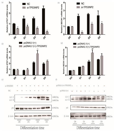 3.3. TP53INP2 Induces Autophagy During the Differentiation