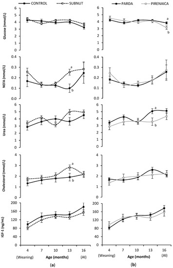 | LW at AI (kg) | 415 | 400 | 420 a | 395 b | 20.5 | 0.199 | 0.036 |