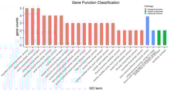 Of the 51 DEGs identified between HS and CN rabbits, we found 34 GO terms with pad < 0.05 (Table S4), most of which were associated with a biological process, including metabolism of lipids, thyroid hormone metabolic process, cellular modified amino acid catabolic process, and acetyl-CoA metabolic process (Figure 3). Maximum number of DEGs was enriched for regulation of lipid biosynthetic process, steroid biosynthetic process, and anion transmembrane transport.
