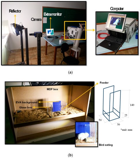 - Mehdizadeh, S.A.; Neves, D.P.; Tscharke, M.; Nääs, I.A.; Banhazi, T.M. Image analysis method to evaluate beak and head motion of broiler chickens during feeding, Comput. Electron. Agric. 2015, 114, 88–95. [Google Scholar] [CrossRef]