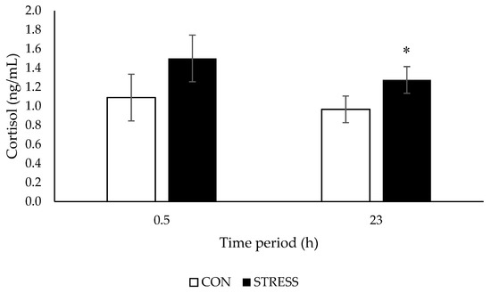 29]. Although similar to our results, both of these studies found that cortisol concentrations were elevated in response to the stressor. In the same study, Svobodová et al. [