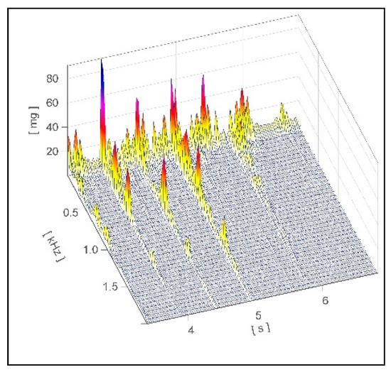 For this study no ethical approval had to be obtained because it did not involve a prospective evaluation or laboratory animals and only non-invasive procedures were applied. The study was conducted in a free-stall barn where the lactating cows (German Holstein) were housed in two groups in two sections. The stall of group 1 consisted of slatted flooring and milking was performed by a milking robot (n = 60). Group 2 was housed in a deep straw barn and was milked twice a day in a milking parlor (n = 84). Further information about cows’ parity was included in the evaluation from herd management software (BOVI-CONCEPT, Metzner-Software, Weichs, Germany). The experimental set-up was placed outside the stable with a 22 m long test track which was partly covered with slatted floor elements (total length: 15.5 m; width: 0.8 m) separately laid (Supplementary materials: Figures S1 and S2). In the middle of the three slatted floor elements (length: 3.1 m; wide: 0.8 m) eight piezoelectric sensors (ICP accelerometer; PCB Group Inc., New York, USA) were attached and the signals of the footfall sound of the cows were recorded with a measuring device of the company IMC® (imc CS-3008-N, imc Test & Measurement GmbH, Berlin, Germany) with a frequency of 50 kHz. Furthermore, rubber buffers were placed under each corner of the slatted floor elements to enable a free oscillation of the single element. The raw footfall sound files (Figure 1) were edited using the IMC® Famos Signal Analysis 7.0 software (imc Test & Measurement GmbH; Berlin; Germany) and passed through a filtering process. The main focus of this filtering process was the detection of the steps and the differentiation of step events from the background noise of the entire experimental set-up. A sound pressure threshold and the direction of the slope of the amplitude were applied as filter criteria.