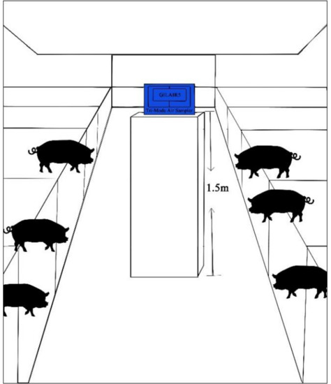 The location of air sampler in the swine confinement buildings.