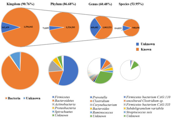 - Lamendella, R.; Oerther, D.B. Comparative fecal metagenomics unveils unique functional capacity of the swine gut. BMC Microbiol. 2011, 11, 103. [Google Scholar] [CrossRef]