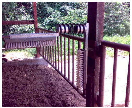 - DeVries, T.J.; Vankova, M.; Veira, D.M.; Von Keyserlingk, M.A.G. Short communication: Usage of mechanical brushes by lactating dairy cows. J. Dairy Sci. 2007, 90, 2241–2245. [Google Scholar] [CrossRef] [PubMed]