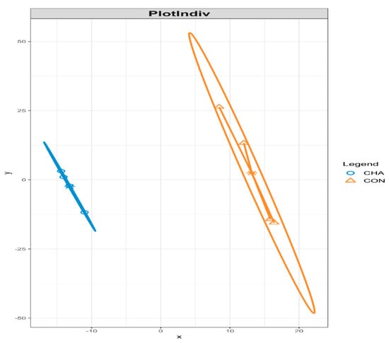 Partial least squares discriminant analysis revealed the differential microbial community composition between CHA and CON groups, when considering the relative abundance of identified bacterial species (Figure 3).