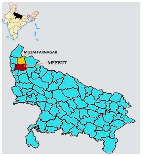 Data were collected in September 2016 in two districts of Uttar Pradesh, India: Meerut and Muzaffarnagar (Figure 1). These are densely populated areas, known for agricultural production, especially sugarcane and wheat. Equids are mainly employed to transport raw bricks for the brick-kiln industry and to carry goods and people to and from market places. Muzaffarnagar and Meerut were purposefully selected for this qualitative cross-sectional study. Brooke India has been working in both for a similar period, and they have a broadly similar context (as described above). However, Muzaffarnagar has had no improvements in hoof shape following Brooke intervention, whereas Meerut has had the most positive results of Brooke India’s intervention areas.
