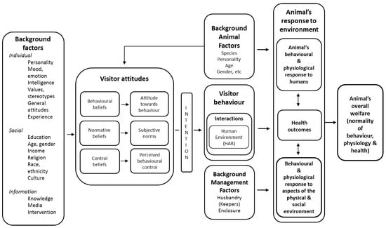 Proposed visitor-animal interaction model (adapted from Hemsworth-Coleman model (2011) by S. Chiew and L. Hemsworth, pers. comms., 2016) [].