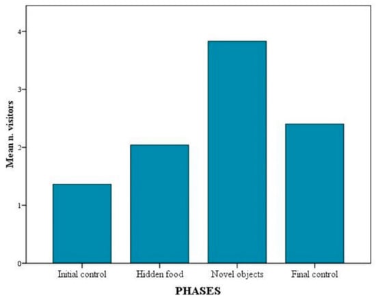 Mean number of visitors in front of the exhibit across the four experimental phases.