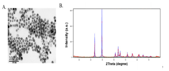 Characterization of nano-Se (A,B): (A) Morphology of the formed nano-Se pictured by transmission electron microscopy (TEM) and; (B) X-ray diffraction (XRD) pattern of the nano-Se.