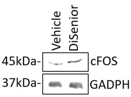 DiseniorTM increases neuronal activity. Immunoblot of cFOS level in hippocampal neurons (21DIV) treated with DiseniorTM.