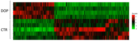 Moreover, on a hierarchical clustering plot, using the normalized DEG values, we were able to distinguish CTR from DOP samples (Figure 2).