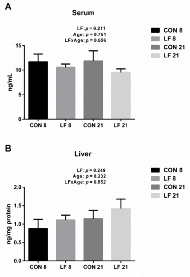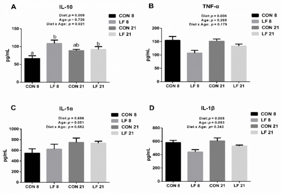 | CON | LF | CON | LF | Diet | Age | Diet × Age | ||