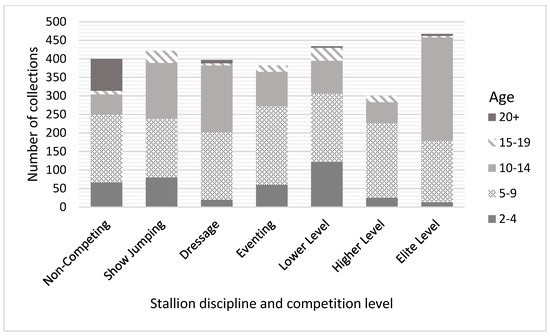 Number of semen collections from each age category within stallion discipline and competition level.