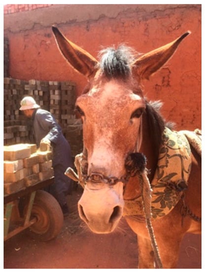 - Fernando, P.; Starkey, M. Donkeys and development: Socio-economic aspects of donkey use in Africa. In Donkeys, People and Development: A Resource Book of the Animal Traction Network for Eastern and Southern Africa (ATNESA); Fielding, D., Starkey, P., Eds.; ATNESA: Wageningen, The Netherlands, 2004; pp. 31–44. ISBN 9789290812197. [Google Scholar]