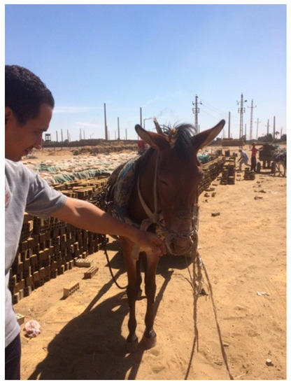 - Ali, B.A.A.; Matoock, M.Y.; Fouad, M.A.; Heleski, C.R. Are mules or donkeys better adapted for Egyptian brick kiln work? (Until we can change the kilns). J. Vet. Behav. 2014, 10, 158–165. [Google Scholar] [CrossRef]