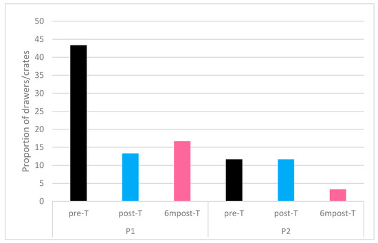A Kruskal–Wallis test showed no significant difference in the proportion of crates/drawers containing panting birds between the visits in both processing plants P1 (χ2(2) = 0.807, p = 0.668) and P2 (χ2(2) = 1.272, p = 0.529).
