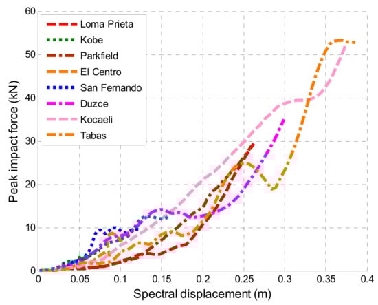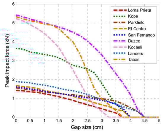 | Earthquake | Largest Peak Impact Force (kN) | Minimum Gap Size Preventing Pounding (cm) |
