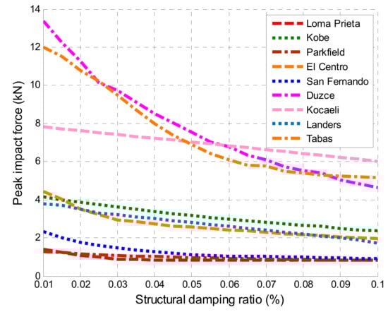 - Khatami, S.M.; Naderpour, H.; Barros, R.C.; Jakubczyk-Gałczyńska, A.; Jankowski, R. Effective formula for impact damping ratio for simulation of earthquake-induced structural pounding. Geosciences 2019, 9, 347. [Google Scholar] [CrossRef]