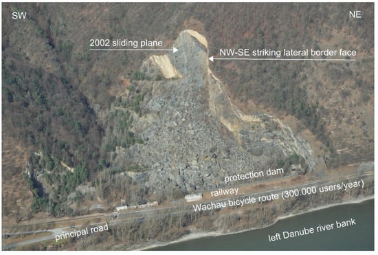The former quarry of Spitz is situated approximately 1.5 km south-southwest of the township of Spitz an der Donau on the left Danube riverbank. The quarry often changed hands, and many rockslides occurred (Figure 1). The present situation poses a hazard of undetermined intensity to a railway, the Wachau bicycle route (300,000 users/year), a principal road as well as the left Danube riverbank. Several proposals for reducing the risk caused by the present situation have been made. However, the costs for the realization of these proposals (e.g., enclosure and coverage of the traffic routes) would be considerable [1,2].