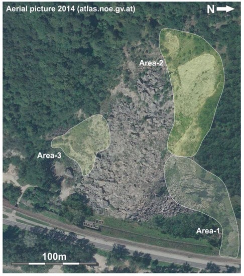 - Geodata GmbH. Monitoring Data of the Quarry Spitz an der Donau; Geodata GmbH: Leoben, Austria, 2017. (In German) [Google Scholar]