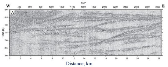 - Oliver, J.; Dobrin, M.; Kaufman, S.; Meyer, R.; Phinney, R. Continuous seismic reflection profiling of the deep basement, Hardeman County, Texas. Geol. Soc. Am. Bull. 1976, 87, 1537–1546. [Google Scholar] [CrossRef]