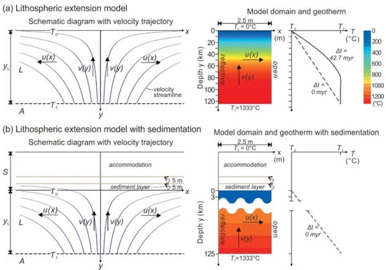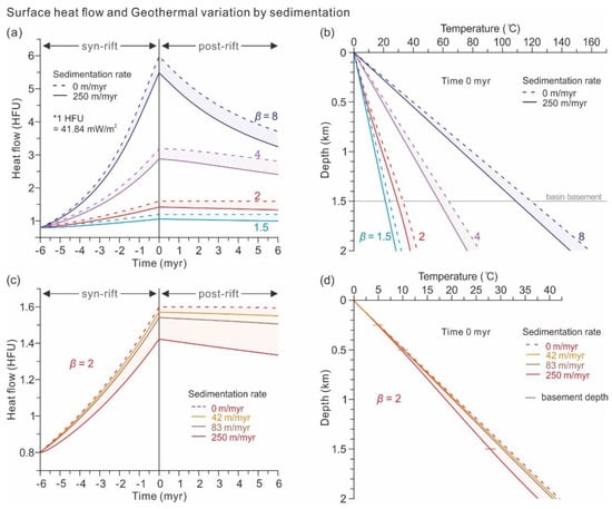 - Lucazeau, F.; Le Douaran, S. The blanketing effect of sediments in basins formed by extension: A numerical model. Application to the Gulf of Lion and Viking graben. Earth Planet. Sci. Lett. 1985, 74, 92–102. [Google Scholar] [CrossRef]