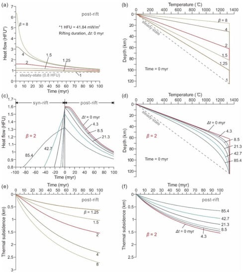 - Zhang, Y.K. The thermal blanketing effect of sediments on the rate and amount of subsidence in sedimentary basins formed by extension. Tectonophysics 1993, 218, 297–308. [Google Scholar] [CrossRef]