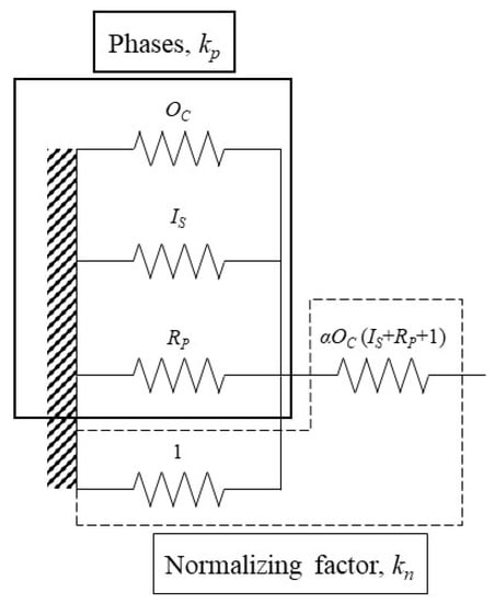 Here, we attempt to apply theory of springs to tsunami resilience in compliance with the conceptual framework proposed in Figure 3. Figure 4 shows the proposed model as an ensemble of series and parallel springs as analogous to that of phases of the conceptual framework. The model has been proposed on the basis of onsite capacity (OC), instantaneous survivability (IS), and recovery potentiality (RP) of a given township as homologous with the spring constants.