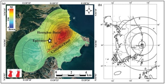 - Kang, S.; Kim, B.; Bae, S.; Lee, H.; Kim, M. Earthquake-Induced Ground Deformations in the Low-Seismicity Region: A Case of the 2017 M5.4 Pohang, South Korea, Earthquake. Earthq. Spectra 2019, 35, 1235–1260. [Google Scholar] [CrossRef]