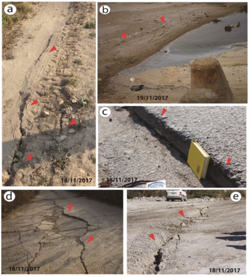 - Papathanassiou, G.; Valkaniotis, S.; Ganas, A.; Grendas, N.; Kollia, E. The November 17th, 2015 Lefkada (Greece) strike-slip earthquake: Field mapping of generated failures and assessment of macroseismic intensity ESI-07. Eng. Geol. 2017, 220, 13–30. [Google Scholar] [CrossRef]
