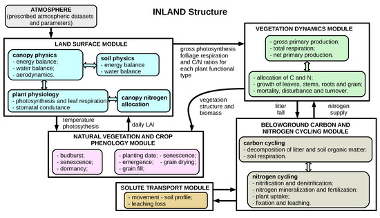- Foley, J.A.; Prentice, I.C.; Ramankutty, N.; Levis, S.; Pollard, D.; Sitch, S.; Haxeltine, A. An integrated biosphere model of land surface processes, terrestrial carbon balance, and vegetation dynamics. Glob. Biogeochem. Cycles 1996, 10, 603–628. [Google Scholar] [CrossRef]