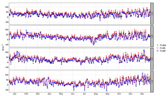 - Wilson, K.; Goldstein, A.; Falge, E.; Aubinet, M.; Baldocchi, D.; Berbigier, P.; Bernhofer, C.; Ceulemans, R.; Dolman, H.; Field, C.; et al. Energy balance closure at FLUXNET sites. Agric. For. Meteorol. 2002, 113, 223–243. [Google Scholar] [CrossRef]