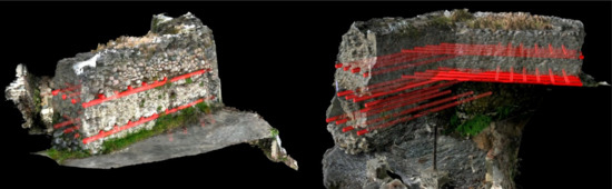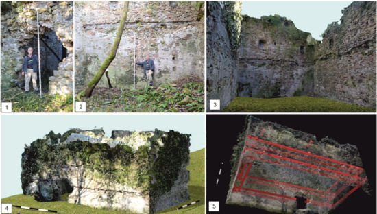 Photogrammetry was also used in the study of the architectural remains of the settlement, primarily for the southern defensive tower, referred to as “Alakhash-abaa”. The resulting orthographic model made it possible to produce the necessary architectural measurements and obtain complete drawings (Figure 5).