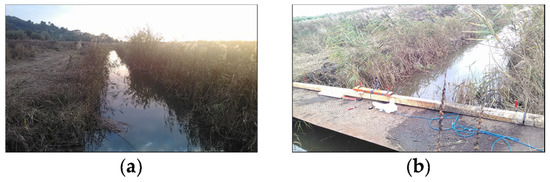 The vegetative and hydrodynamic (streamwise velocities and water levels) field measurements were conducted in an abandoned vegetated reclamation channel, which drained field plots that had not been cultivated in the previous 5 years [1,10]. As depicted in Figure 1, the vegetated reclamation channel belongs to a lowland in hydraulic connection with the Massaciuccoli Lake, located in northern Tuscany (Italy).