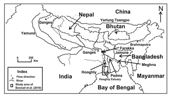 Location of the Ganges and Hooghly rivers, together with that of the study area of Bonnail et al. [1] in India, and confluence of the Ganges (Padma) and Brahmaputr (Jamuna) rivers to form Meghna River in Bangladesh before flowing into the Bay of Bengal. Modified after Samanta and Dalai [10].