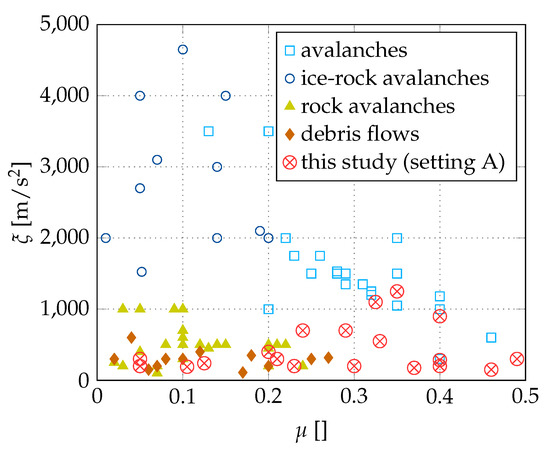 Typical and parameters for different mass movements are plotted in Figure 4 along with the best-fit Voellmy-type friction parameters of the compiled hillslope debris-flow events used in this study (Setting A).