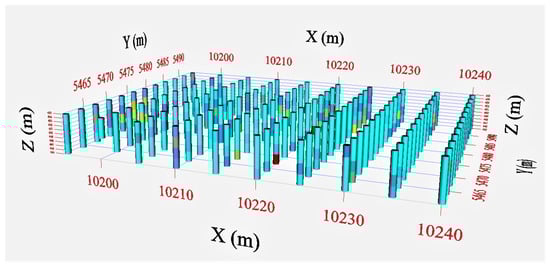 Assume the pit carried out a grade control exercise using samples obtained from vertical data, in order to delineate the gold-bearing ore for the next four benches. Thereby, 119 vertical blastholes horizontally spaced as 5 × 2.5 m were developed from the surface by rotary drilling practice as shown in Figure 1 and sampled in 2.5 m vertical intervals. Basic geometrical and statistical descriptions for the experimental data can be found in Table 1 and Table 2. Geometrical limits of the blasthole drilling grid can be found in Table 1.