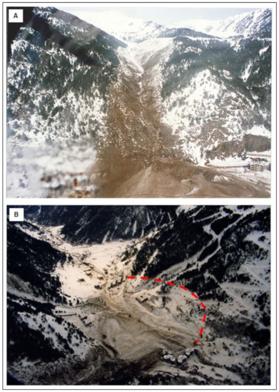 In Andorra, the LFd’A event marked a “before-and-after” in avalanche investigation and data collection. The Cartes de Localització Probable d’Allaus (Maps of Probable Avalanche Paths [8]) were revised and completed, the Cadastre d’Allaus d’Andorra (Andorra Avalanche Cadastre [16,50]) was initiated and the Plans de Prevenció de Riscos d’Allaus Previsibles (Prevention Plans of Predictable Avalanche Risks [16]) were launched within a few years. The country’s land use management and planning were vastly improved. Efforts to increase knowledge of avalanches and their management are ongoing and will continue in the future in this small, mountainous country.