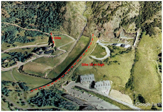 In the run-out area, an 18 m high dike with a flat area upstream was built, designed to hold back the denser part of the avalanche and to deflect the aerosol. The overall aim is to protect the infrastructures located below (the parking area, buildings and lower chairlift of the ski station, Amadeus apartments, Patagonia building, Velvet building, Crest Hotel and Astra complex) from the direct impact of the avalanche. A smaller dike in the opposite part of the run-out area was constructed to protect block C of the Prat Sobirans apartments and the access to the Velvet building (Figure 11). Most buildings were reinforced, and the structure of the Prat Sobirans block D was modified with the removal of three flats.