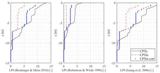 - it has been shown that the Robertson and Wride [16] approach gives higher values of the LPI. On the other hand, the applied corrections have the only aim of obtaining the same predictions from both CPTm and CPTu. The results obtained with this approach could have been affected by the assumptions we made regarding some factors (i.e., rd, MSF and Kσ);