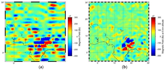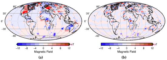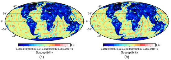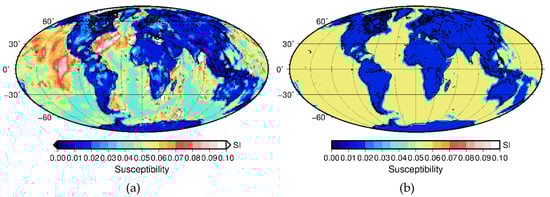 - Lesur, V.; Vervelidou, F. Retrieving lithospheric magnetization distribution from magnetic field models. Geophys. J. Int. 2019, 220, 981–995. [Google Scholar] [CrossRef]
