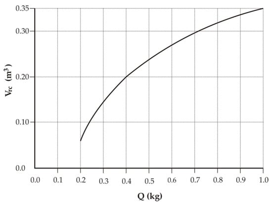 Diagram of relationship between the volume of spherical cavity Vrc (m3) and the mass of explosive charge Q (kg) [].