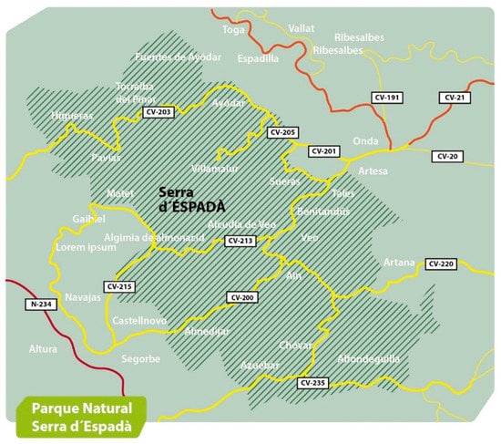 21. Cebrián, R. Montañas Valencianas. Sierra Espadán; CEV: Valencia, Spain, 1999. [Google Scholar]