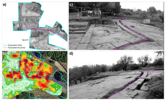 The superimposing of the plan obtained from the documentation of the archaeological excavation on the resistivity map shows the perfect correspondence between the supposed features of the resistivity highs and the structure actually brought to light (Figure 7).