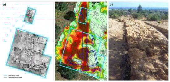 In 2014, research conducted jointly by the Valley of the Temples Park, the Polytechnic of Bari, the Universities of Catania, Enna, Molise, and the Institute for Technologies Applied to Cultural Heritage (now recalled Institute of Heritage Sciences) of the National Council of Researches of Italy led to the discovery of the theater of Akragas [,,]. The work was realized on several levels and with different techniques of analysis such as topographic studies, analysis of satellite images, geomorphological characterization of the land, geophysical surveys, and archaeological surveys. The non-invasive investigation played a significant role in providing detailed information on the exact location and size of the structure. In this work, a comparison between the archaeological structures hypothesized on the basis of geophysical surveys and the archaeological structure excavated is presented.