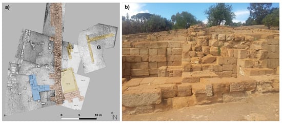 - Lepore, G.; Caliò, L.M. Agrigento: Archaeology of an ancient city. Urban form, sacred and civil spaces, productions, territory. In Proceedings of the 19th International Congress of Classical Archaeology, Archaeology and Economy in the Ancient World, Bonn, Germany, 22–26 May 2018; Bentz, M., Heinzelmann, M., Eds.; Propylaeum: Heidelberg, Germany, 2019; Volume 41. [Google Scholar]