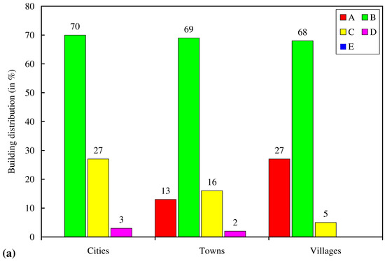 Percentage of building types (a) and percentage of the population in them (b) in the three class sizes of settlements used by QLARM for Italy.